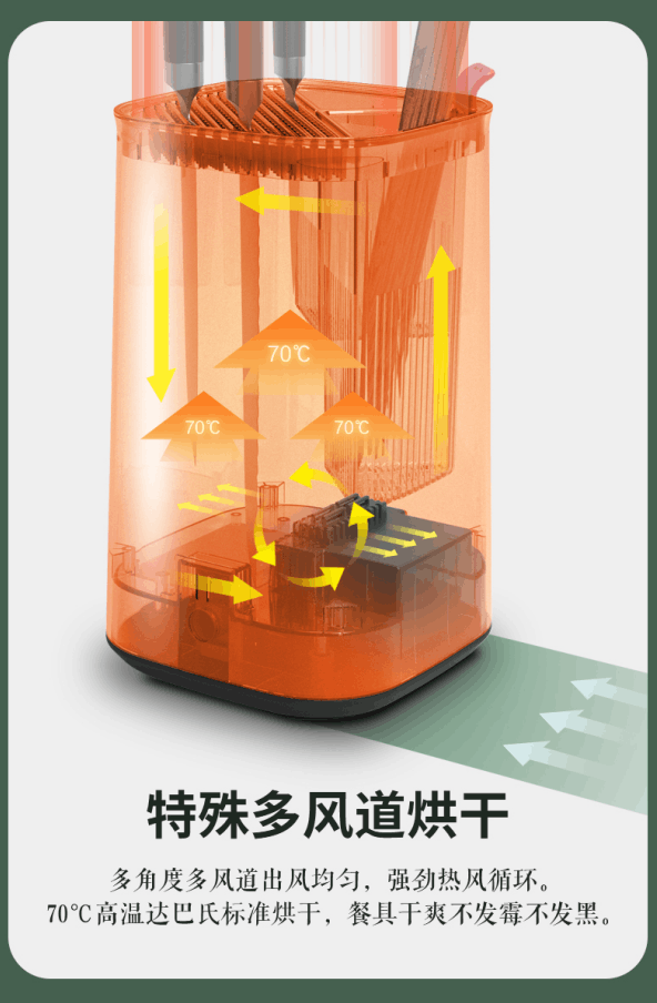 Special multi-air duct design, 360-degree drying and sterilization of knives are more thorough and even.